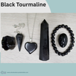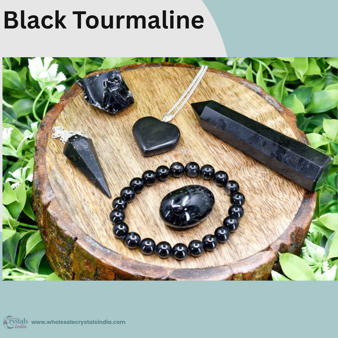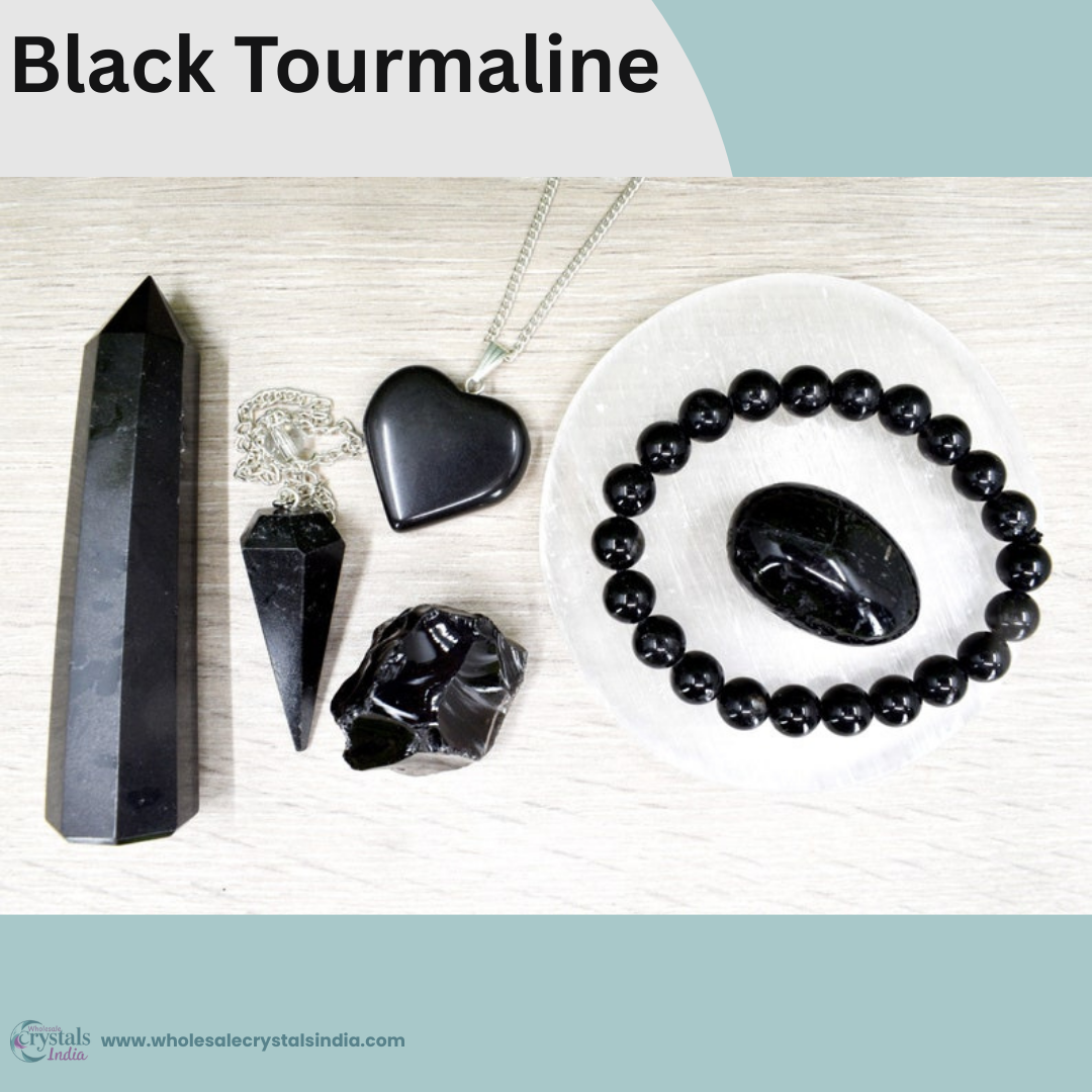 Black Tourmaline Crystal Healing Set | 6+1 Combo with Bracelet, Pendant, Tower & Free Selenite Plate