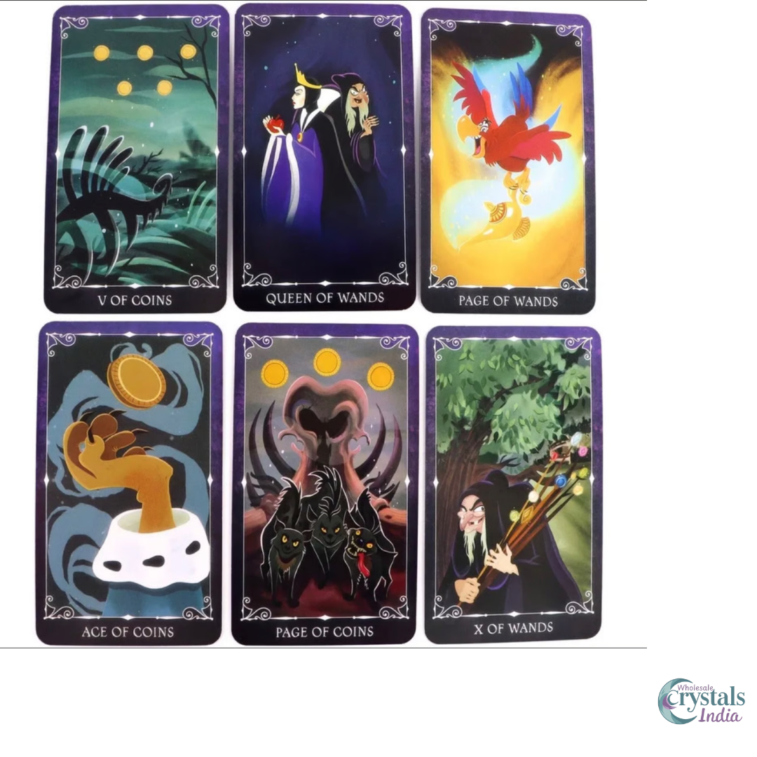 Step into the darker side of magic with the Villains Tarot Deck, inspired by Disney’s most iconic villains. This deck blends classic tarot symbolism with striking illustrations of beloved characters like Maleficent, Ursula, Hades, and more. Perfect for collectors, Disney fans, and tarot readers who enjoy a bold twist on tradition.