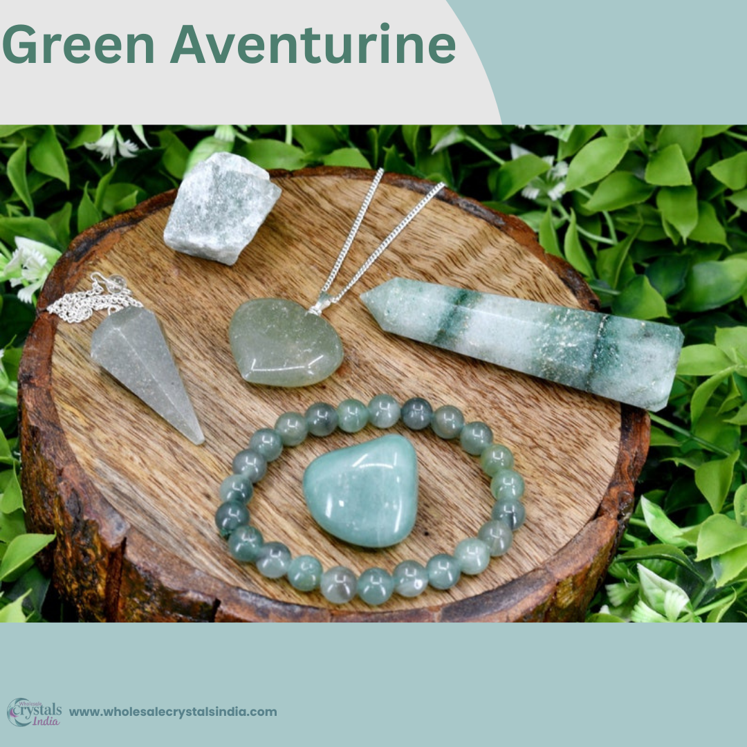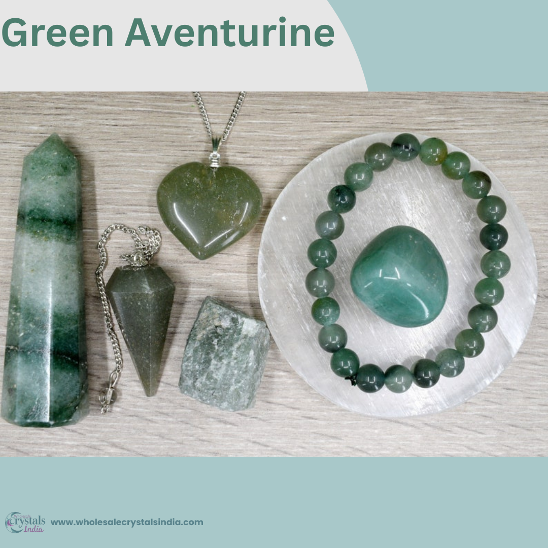 Green Aventurine Crystal Set β 6+1 Healing Combo with Bracelet, Pendant, Raw Stone, Tower & Free Selenite Plate