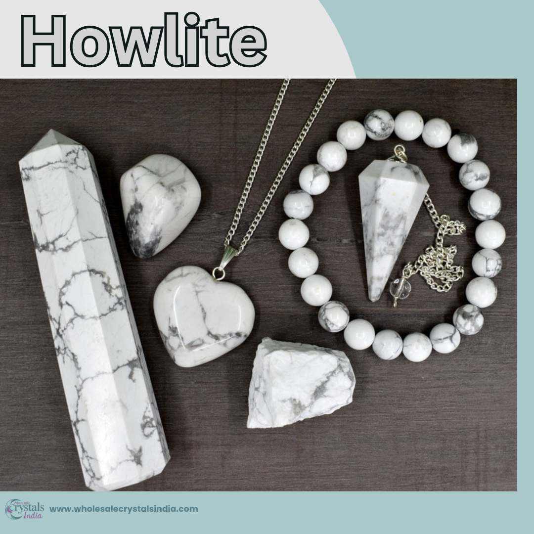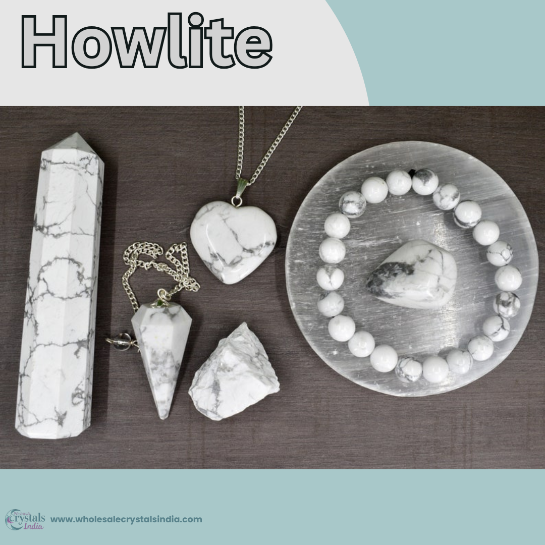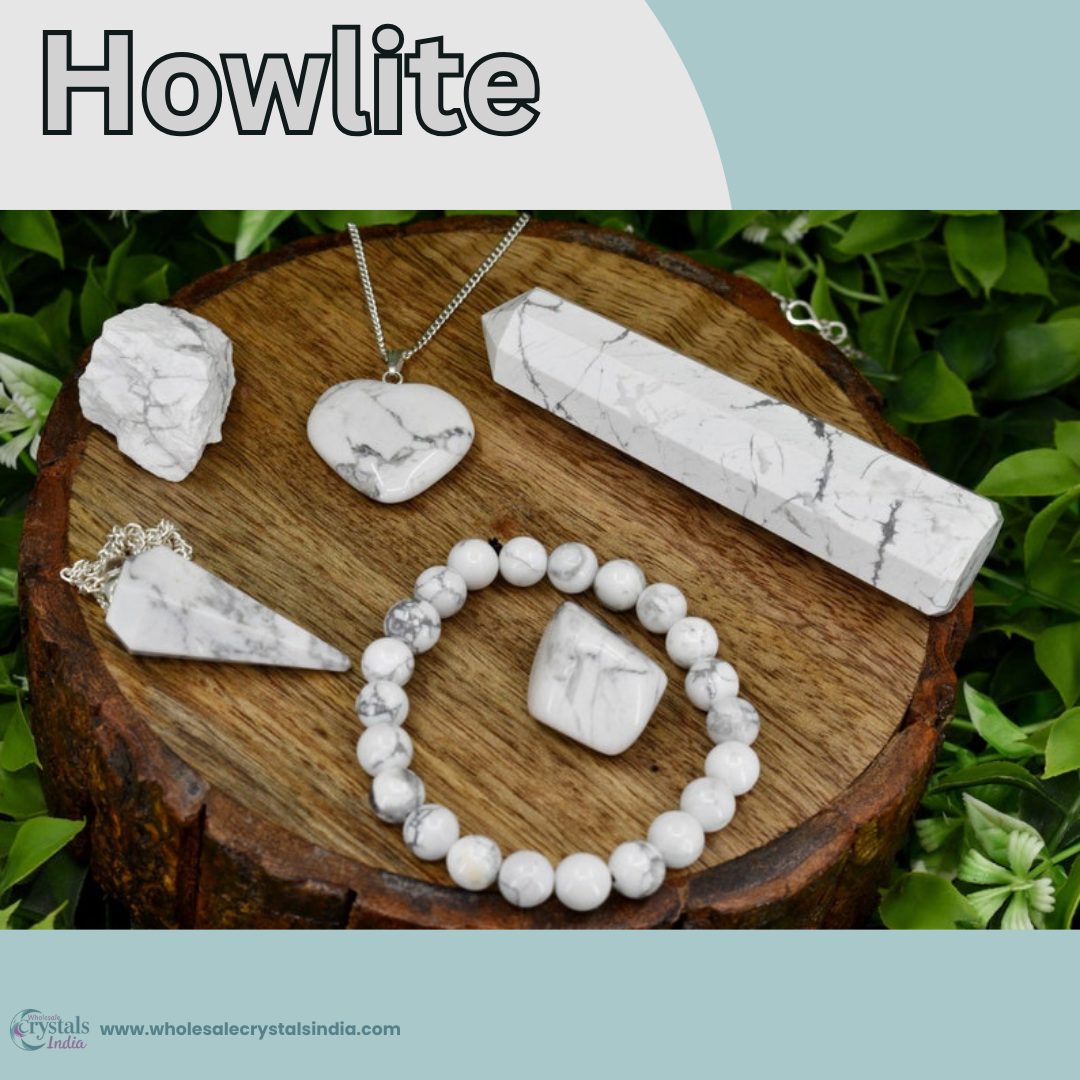 Howlite Crystal Healing Set | 6+1 Combo with Bracelet, Pendant, Tower & Free Selenite Plate