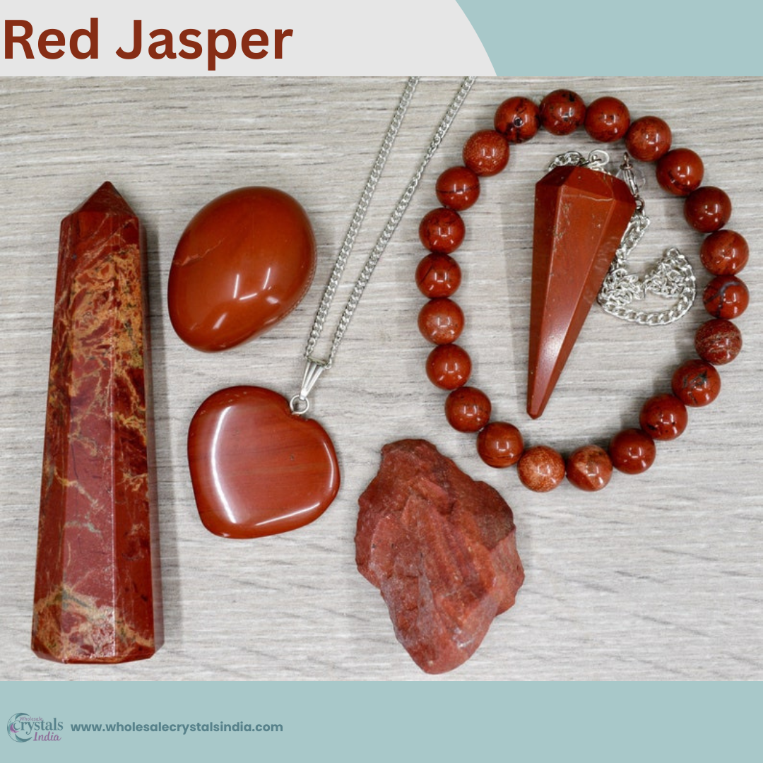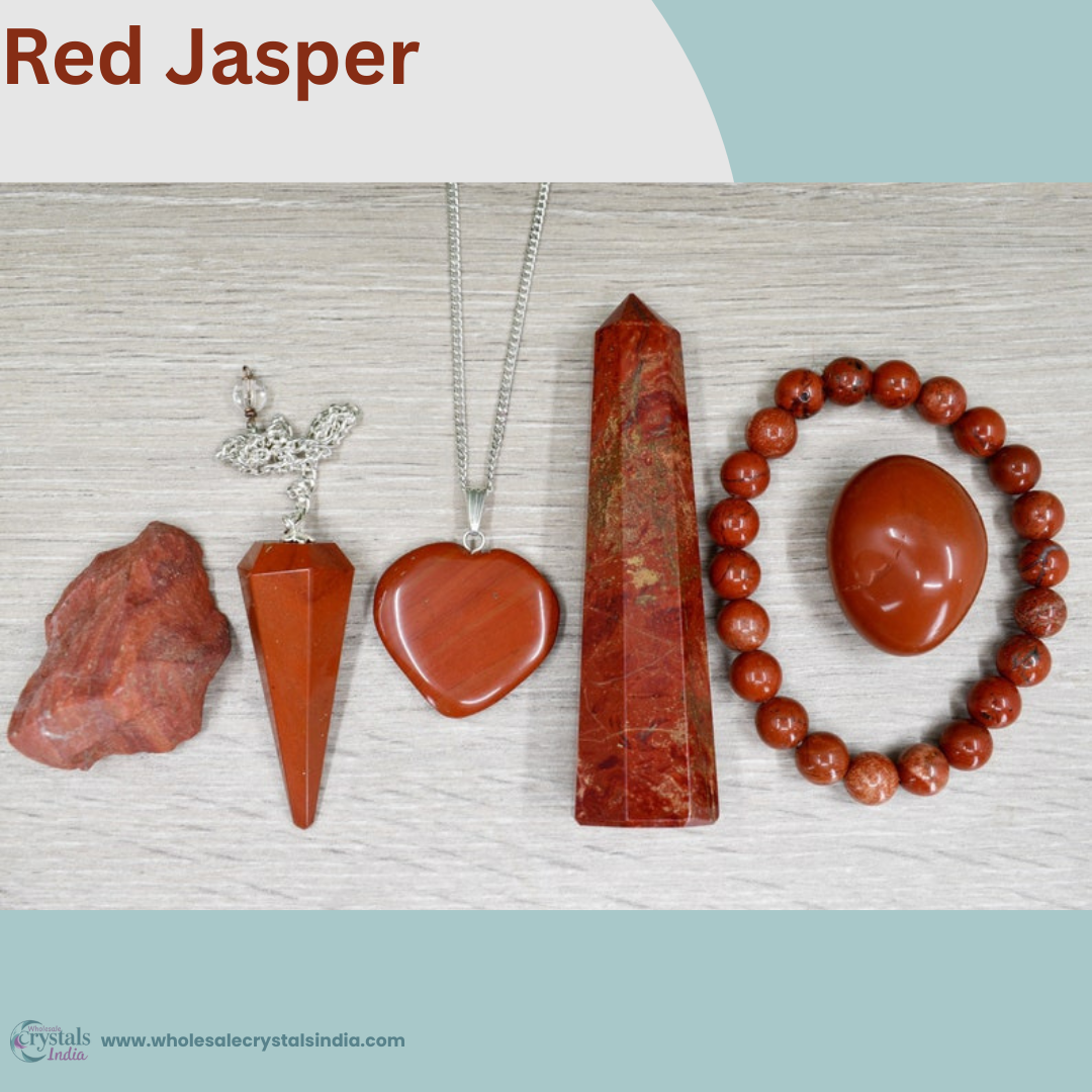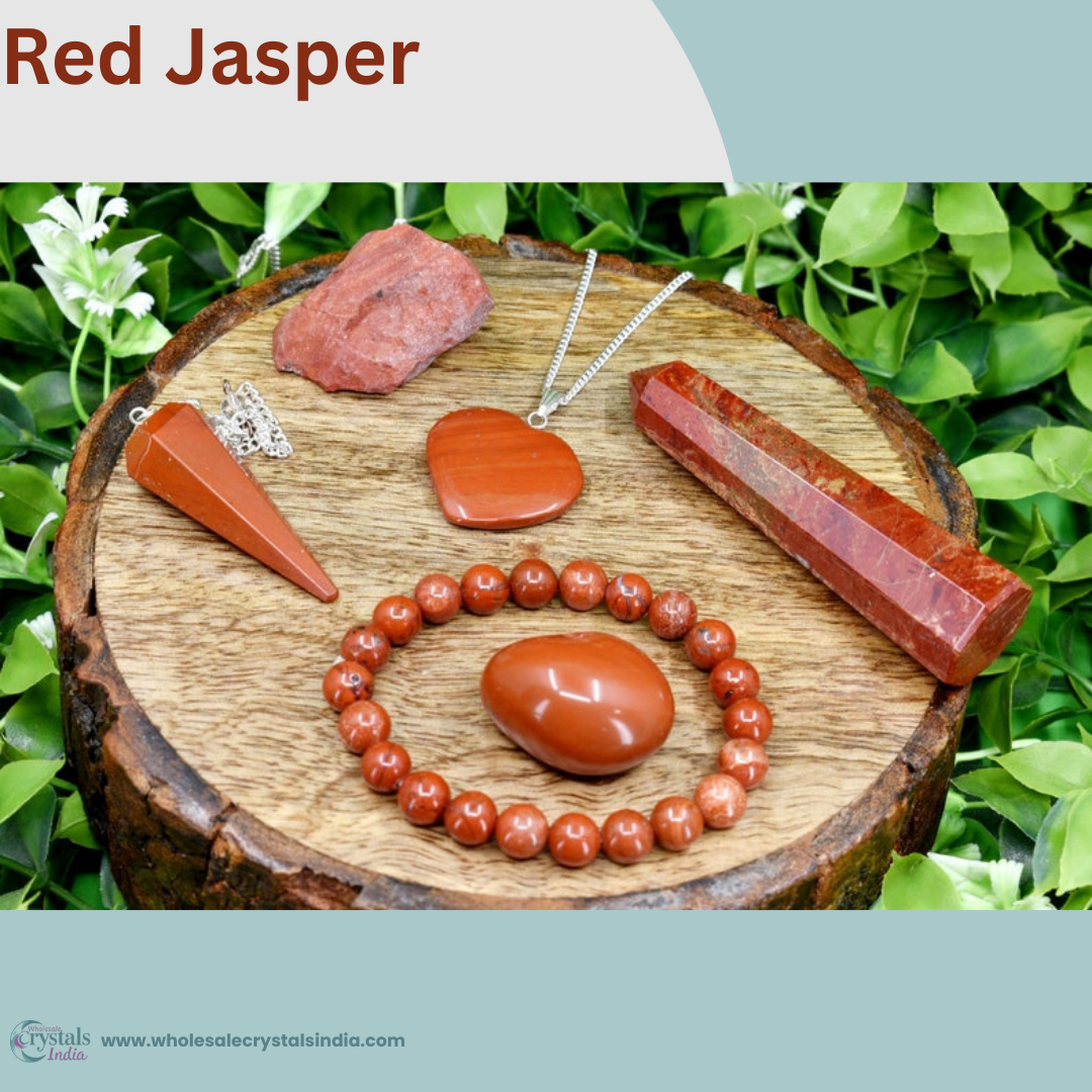 Red Jasper Crystal Set β 6+1 Healing Combo with Bracelet, Pendant, Raw Stone, Tower & Free Selenite Plate.