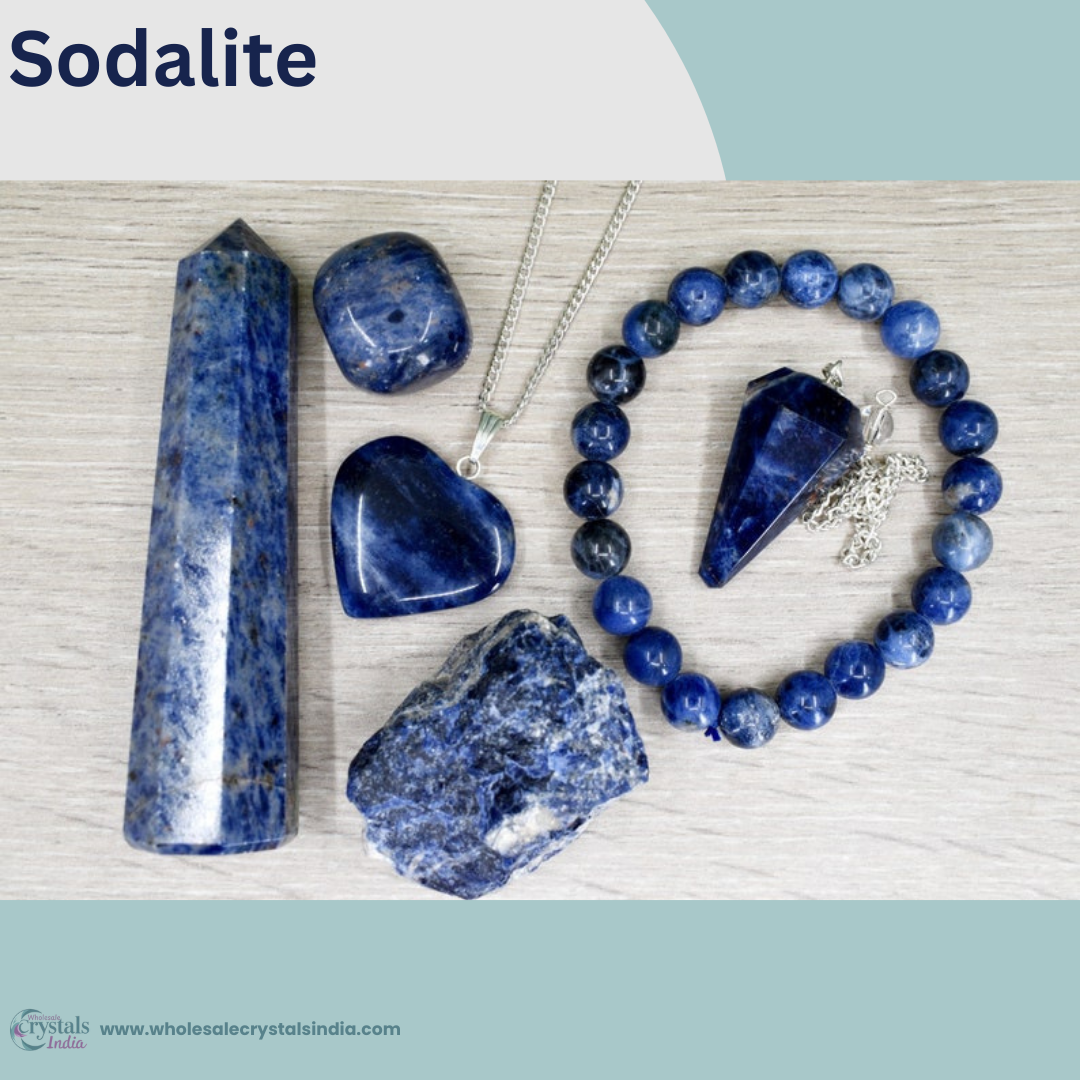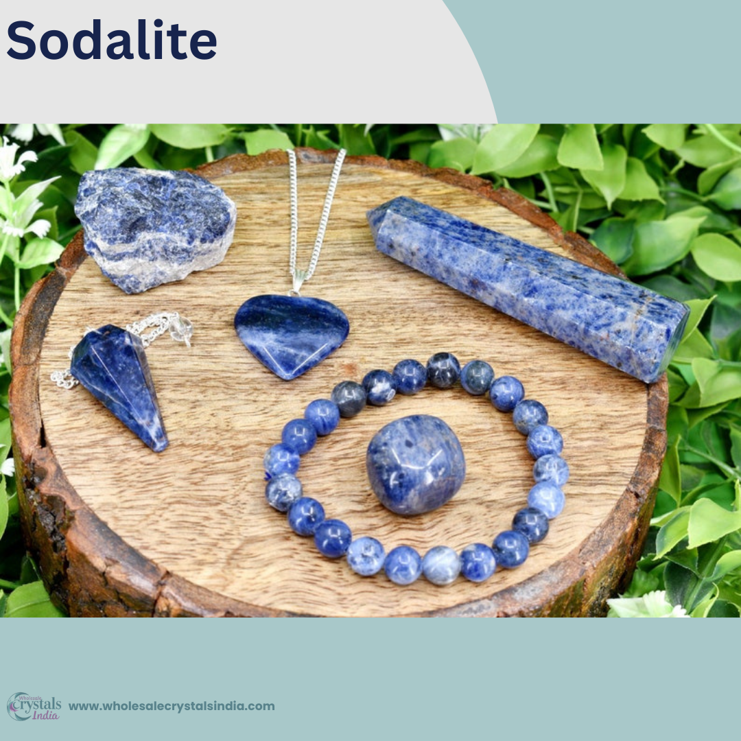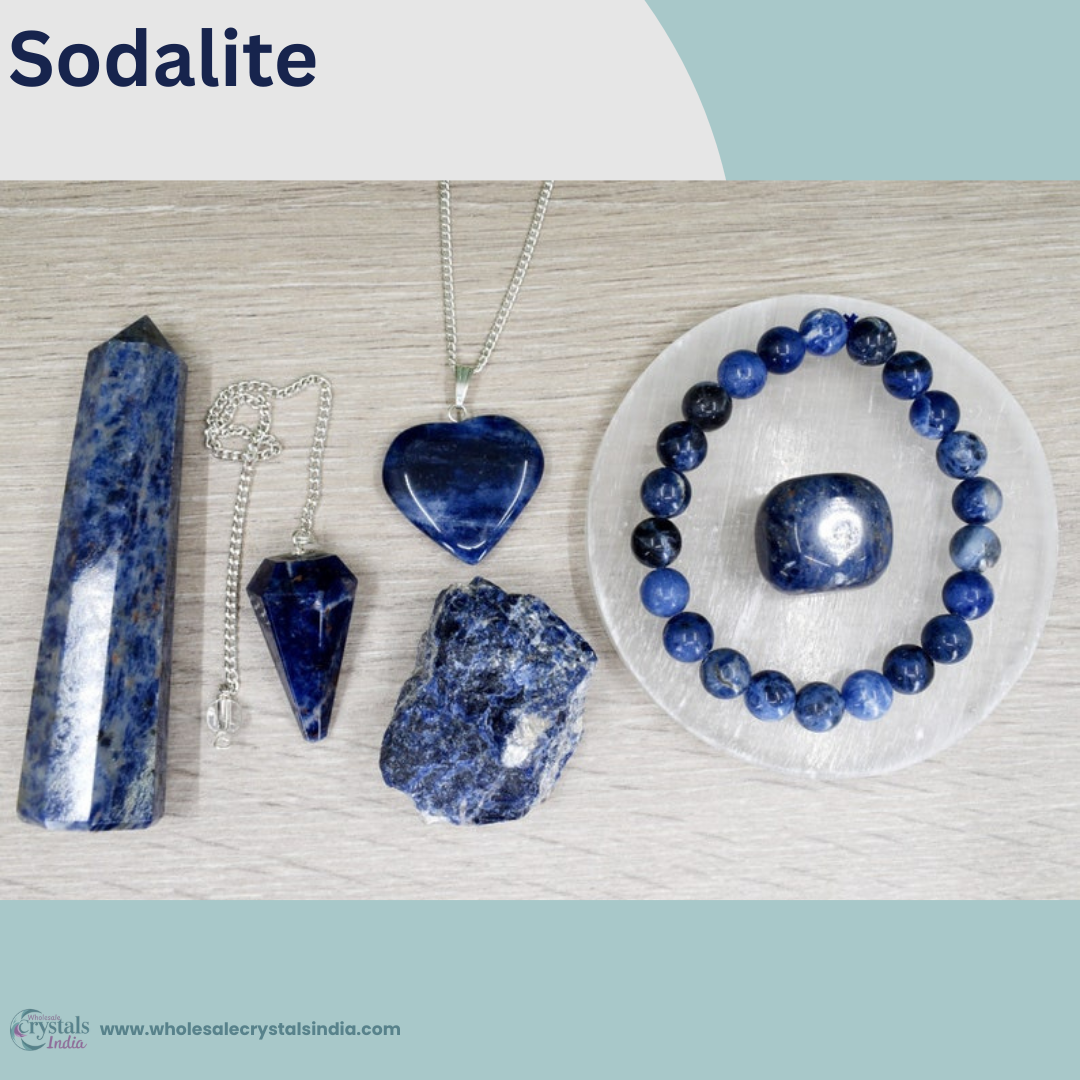 Sodalite Crystal Healing Set | 6+1 Combo with Bracelet, Pendant, Tower & Free Selenite Plate