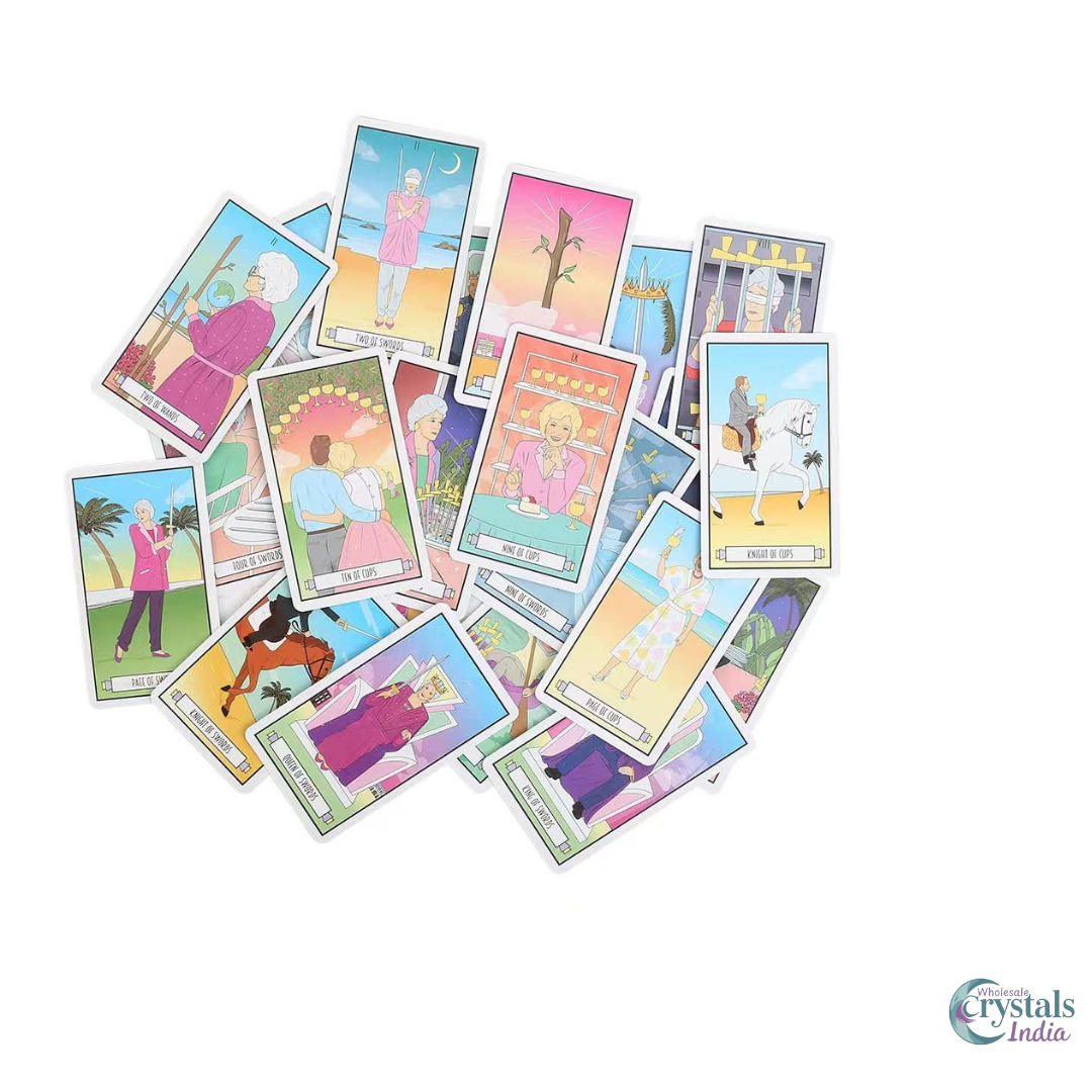 - Complete 78-card tarot deck with Golden Girls–themed illustrations